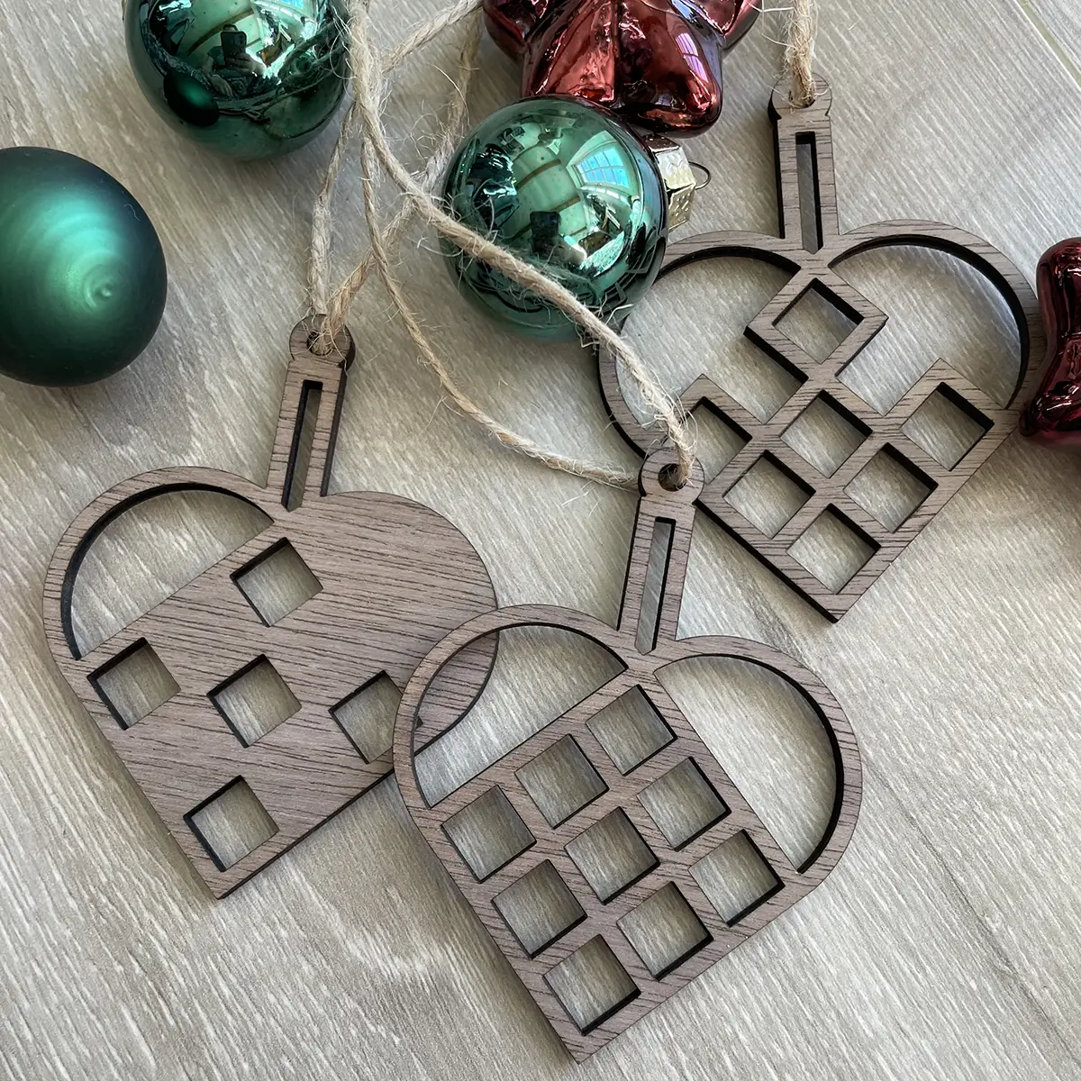 “Flettede” julehjerter i valnød. Superflotte og enkle. Hvert hjerte måler 6 x 8 cm
